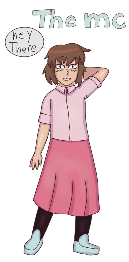 MC is kind of kind, passive and real reliable. She’s a little bit perverted and act very nice and has some like interest like playing video games and reading comics that people considered masculine but she never really let anyone her a tomboy.